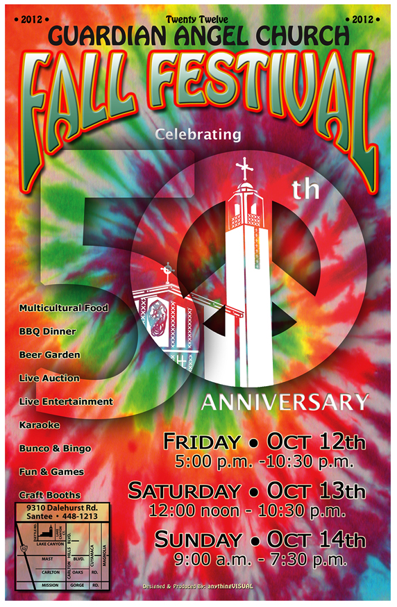 PROMOTIONAL POSTER • Local Church's 50th Anniversary. Tie Dye Used to Represent 1964 Opening — PRINTED ON 11"x17" UNCOATED CARDSTOCK