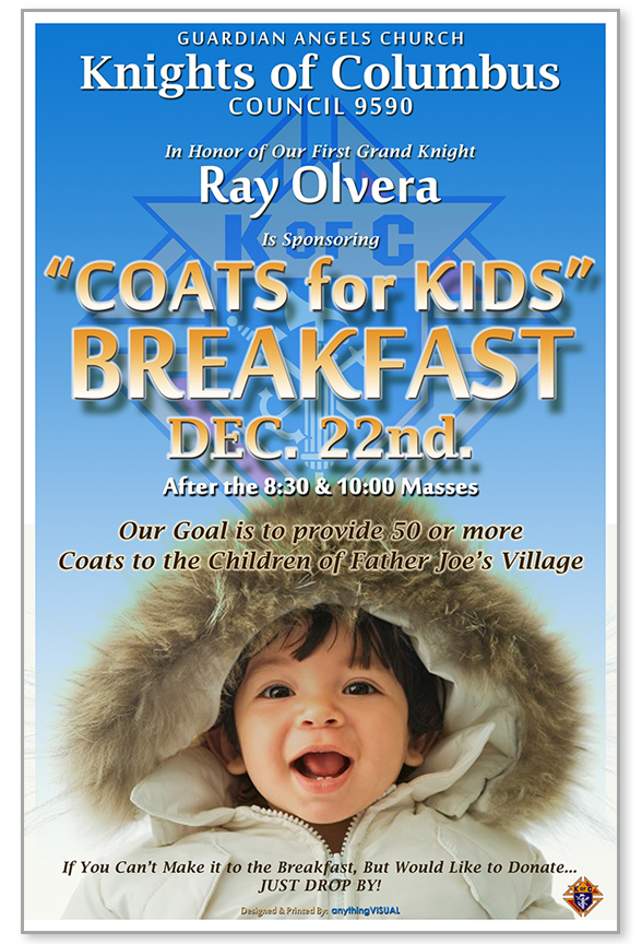 PROMOTIONAL POSTER • Local Knights of Columbus' "Coats for Kids" Fund-raiser — PRINTED ON 11"x17" UNCOATED CARDSTOCK