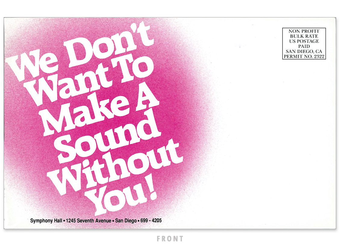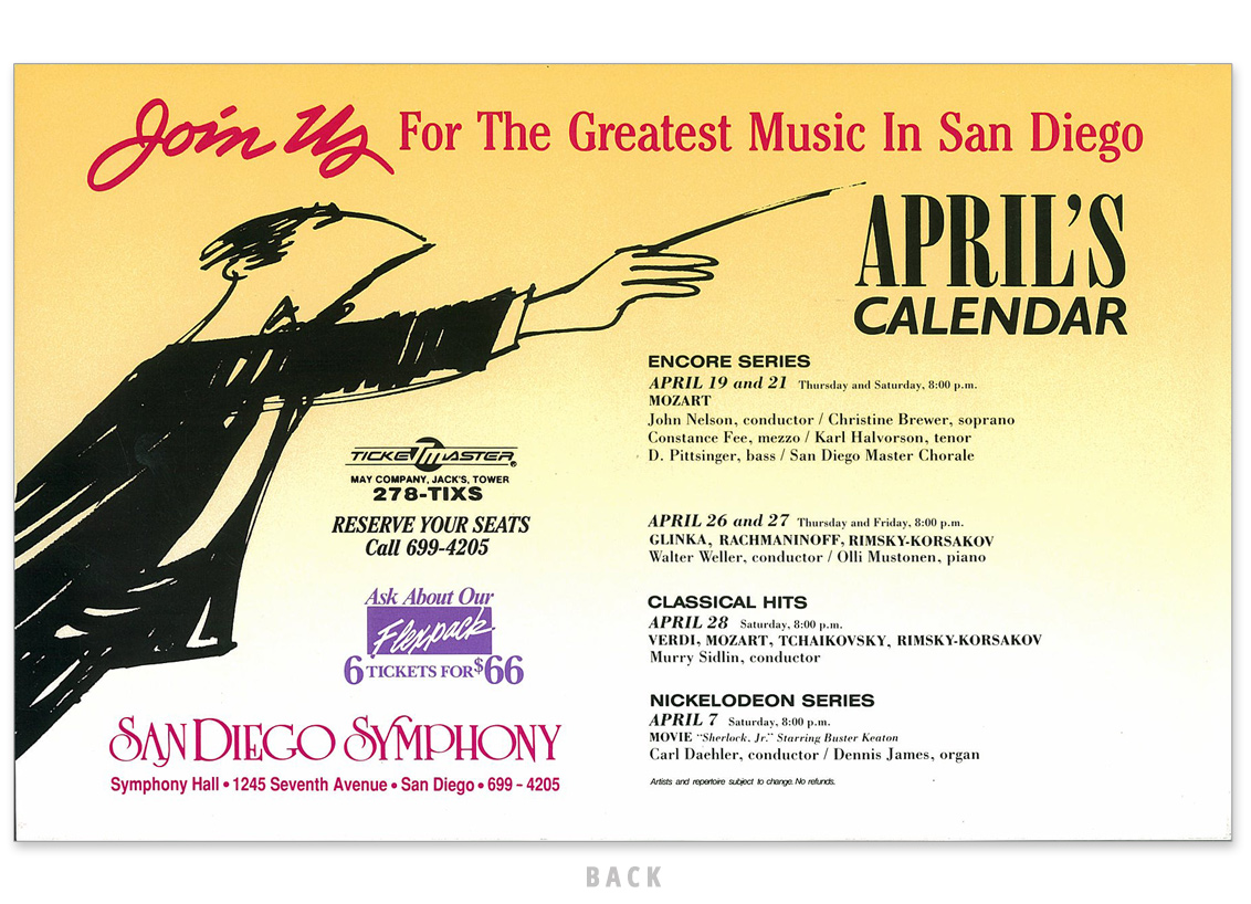 PROMOTIONAL MAILER • Two-sided Mailer, Announcing "San Diego Symphony's Monthly Schedule" — PRINTED ON 5.75"x9" COATED CARDSTOCK