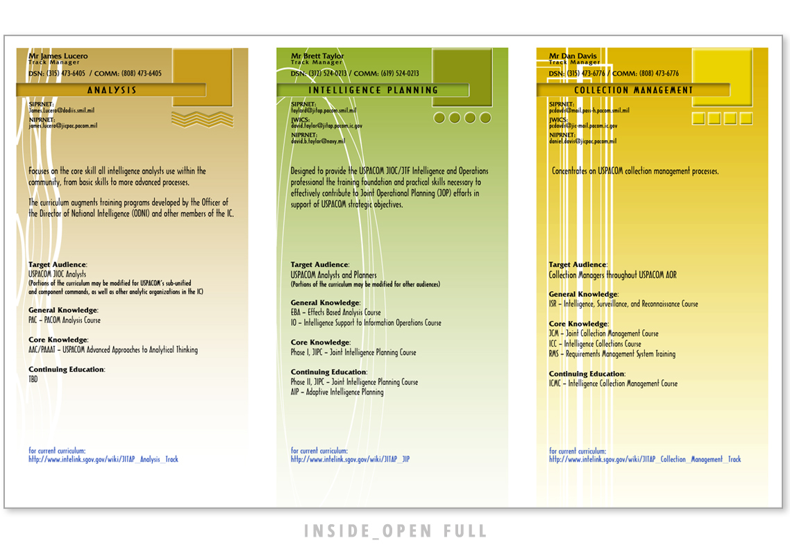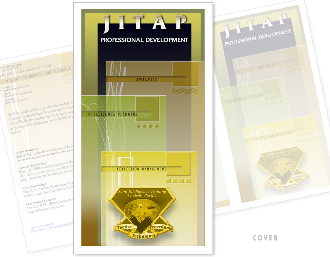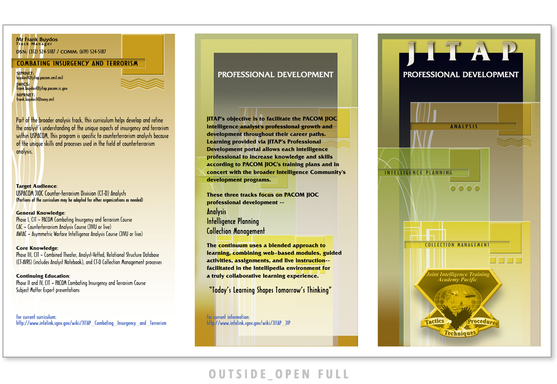 TWO-SIDED TRI-FOLD BROCHURE • For Joint Intel Training Activity Pacific's (JITAP) Professional Development Program — PRINTED ON 13"x19" UNCOATED PAPER